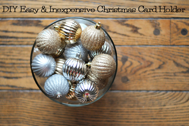 How to DIY: Easy & Expensive Christmas Card Holder from @HeathersDishFirst things first: it’s important to note that I don’t know how much the ornaments actually cost since I don’t remember getting them in the first place.  BUT we are already but a week away from Christmas, which means that you guys have probably already done your decorating thus far.  Wait for the shatter-resistant ornaments to go on 90% off sale in 9 days.  Promise.  It’s gonna be great!